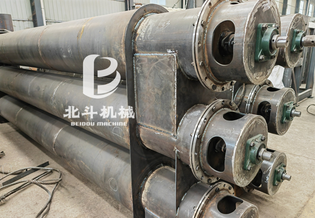 冷炭出料機(jī)采用夾層水套設(shè)計(jì),內(nèi)外筒體夾層為冷卻水通道,內(nèi)筒采用螺旋推進(jìn)物料,提高了冷卻效果,降低了成品炭溫度。通過夾層冷卻水不斷帶走內(nèi)筒物料的熱量,使高溫的成品炭冷卻到常溫。
